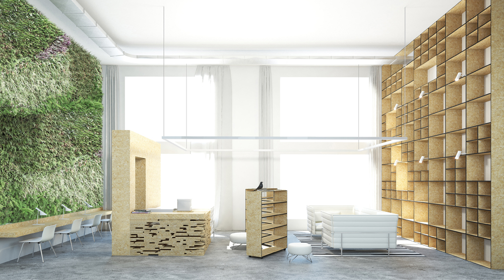 We designed a modular bookshelf system for the interior. A single-wheeled chipboard bookshelf measures 800 mmX1500 mmX300 mm respectively in width, height, and depth. Two rail-and-lock systems on the upper and lower sides are mounted on both sides of a modular bookshelf. Users can accordingly alter the form of multi-bookshelves by either compacting or forming linear combinations so to counteract a different space for usage. In such a way, books are well demonstrated without limiting the potential of space.