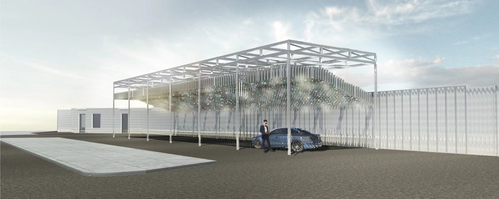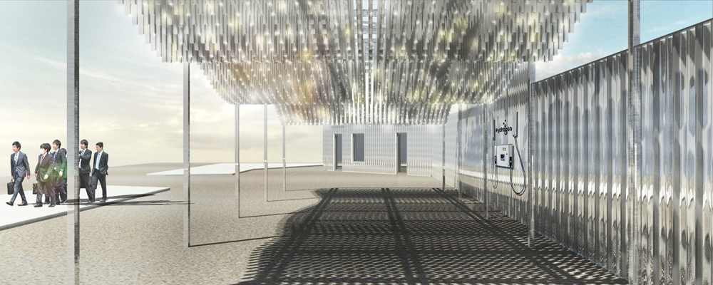 A Japanese establisher of these stations is aiming for a different approach than the well-known practical design of the current gasoline stations. The challenge was to design an iconic station, which represents the Japanese hydrogen refueling stations: “Simple, clean like water, fun, kinetic functional and trendy”.