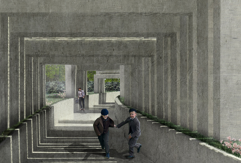 We, therefore, propose “Journey of Hope” in a contemporary fashion to remember the past and to revitalize the two existing monumental elements together with the park where they are all located. Instead of creating a free-standing new object to be merely looked at, we think of an integrated space where visitors can step in to experience and empathize with the journey those war refugees ever walked, and in the meantime balance out the weights of today and the past, offering a new portal to re-observe the history of the monumental site in general.