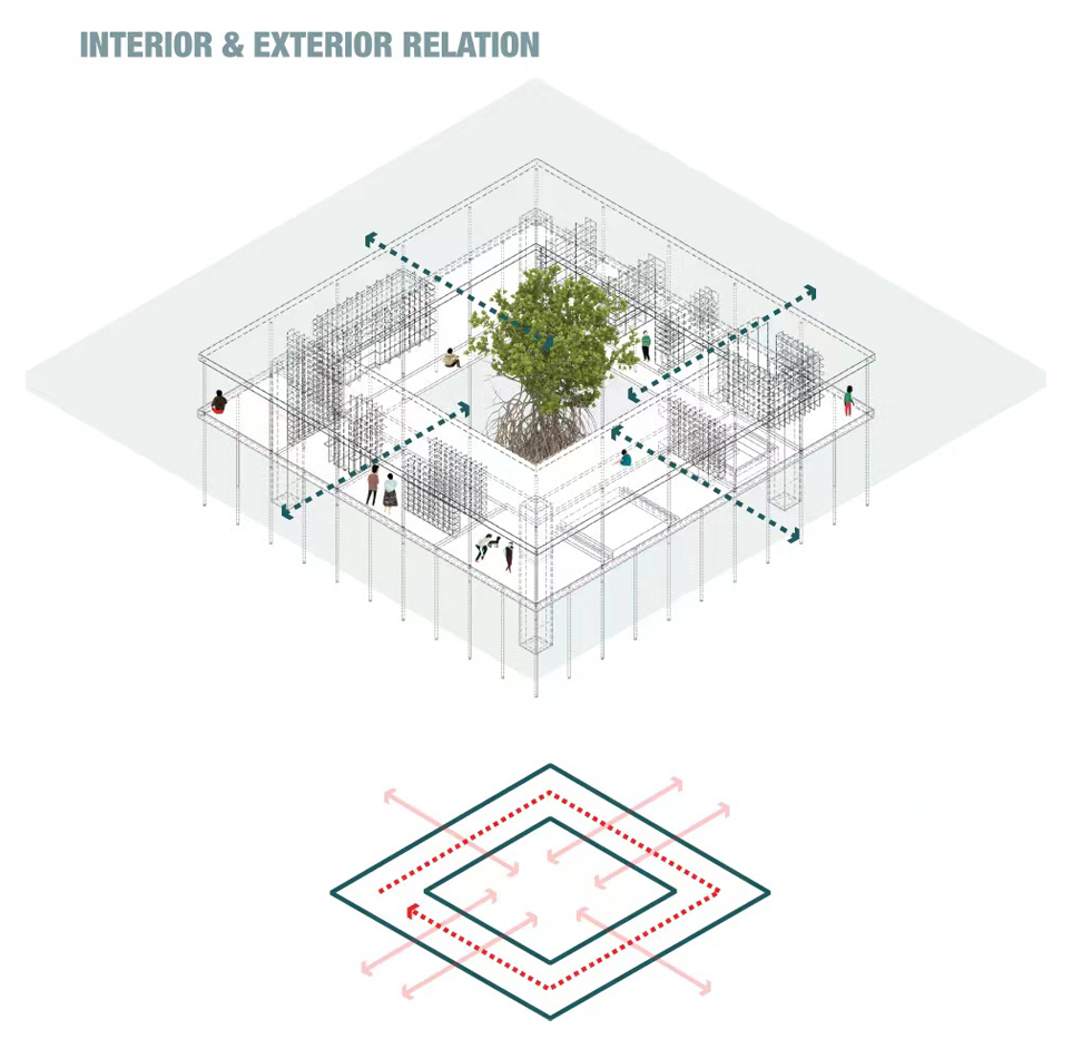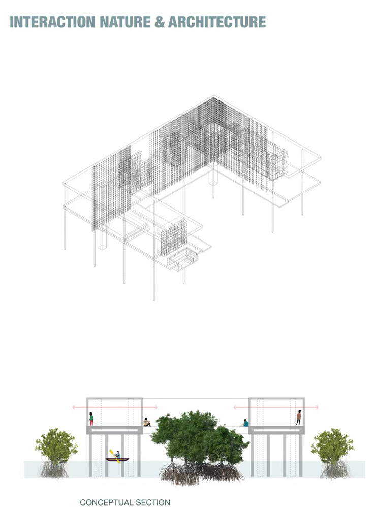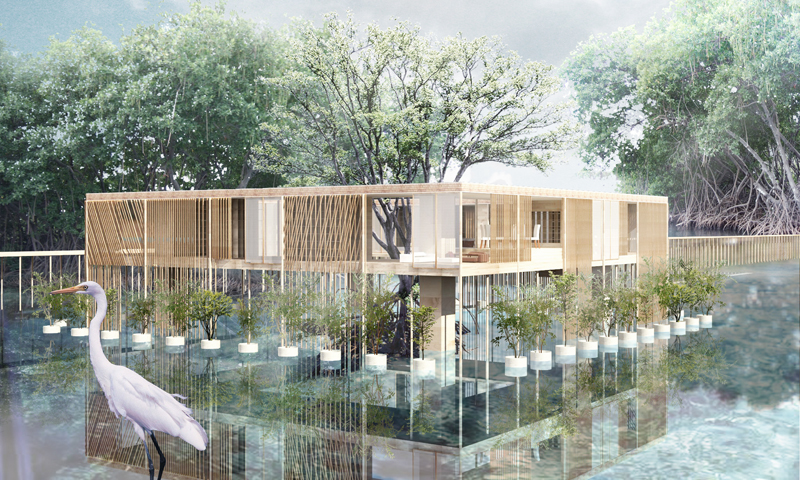 In order to preserve the existing mangrove while being able to reforest the critically affected area with young mangroves, we propose a design that is versatile in providing a station for research and plantation and creating a new lifestyle for the context- mangrove farm living.