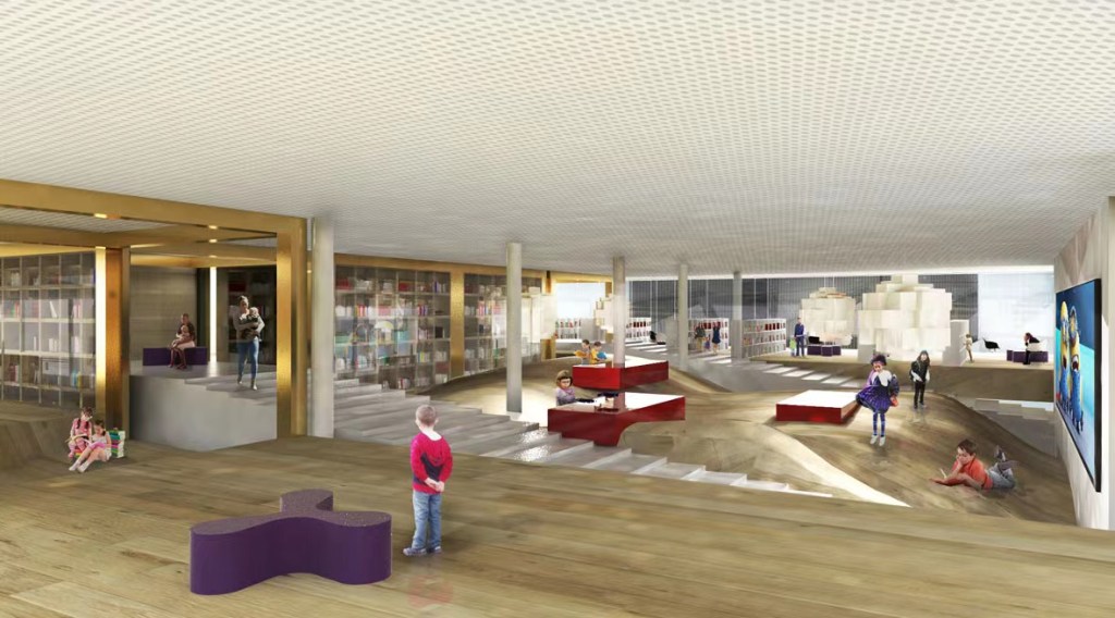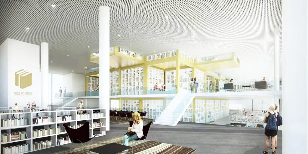 The treasury repository resembles a core, depicted as golden storage boxes glancing at the gold antiquity of Varna. Surrounding the core it develops a free floor plan. We are inclined to provide a broad range of library spaces just like a small pluralistic city, as we feel that interaction is the key to learning and experiencing. Through acrobatic composition, the functionality of storage boxes is even enriched with newly born podiums and sunken rooms, which also contribute to the zoning of private and public library spaces. Commingling the floor heights, Voids, and split levels together with the positioning of storage, there creates a space orchestra. The placement of storage boxes evolves with every level, resulting in unique floor plans for each story, inviting visitors for exploration.