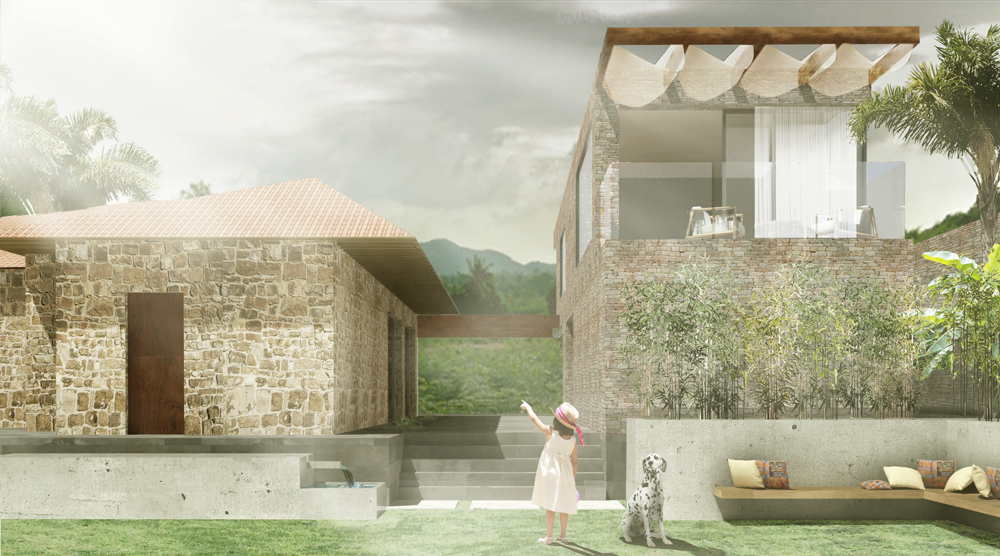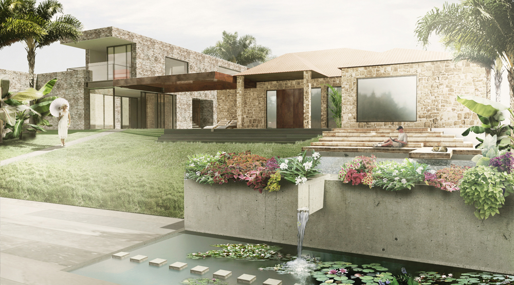 We are aiming at creating an environmental design with regard to material use and architectural languages. For a vernacular, functional, and economical design, we are determined to source from local suppliers for Thai foliage and water-loving plants and building materials such as weatherproofing natural stones from the local quarry.